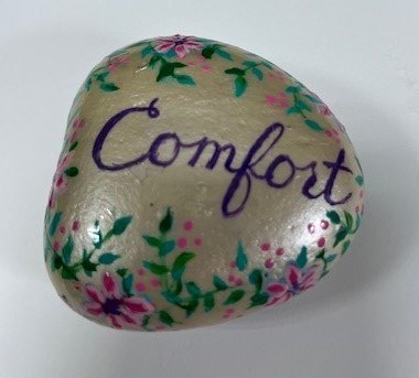 Painted rock 12 Comfort - Tan Tan with green leaves