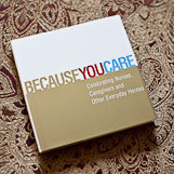 Because You Care. Celebrating Nurses, Caregivers and Other Everyday Heroes. Compiled by Dan Zadra. Designed by Steve Potter and Jenica Wilkie. This book is dedicated to the beloved army of healthcare and hospice professionals whose daily courage and compassion brighten our lives. Hardcover -73 pages.
