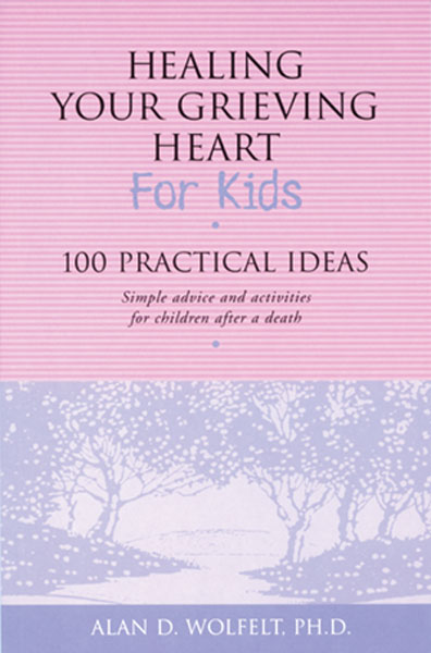 Healing Your Grieving Heart for Kids - 100 Practical Ideas - Simple advice and activities for children after a death. By Alan D. Wolfelt, PH.D. Someone you love has died. This is probably a very sad and very hard time for you. The painful thoughts and feelings you have inside you are called greif. You need to let those thoughts and feelings out. Letting out your grief is called mourning. This book will help you mourn in ways that feel comfortable for you. This book will will help you feel better and live a happy, full life again. Softcover. Pages 106.