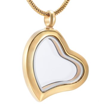 J-8886-Gold Bogati Stainless Steel Cremation Urn pendant with Chain - Fillable Glass Heart