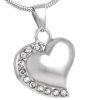 J-077 Stainless Steel Cremation Urn Pendant with Chain - Heart - Clear Stones