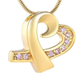 Cremation Jewelry - J-783 Gold Heart with Light Pink Stones