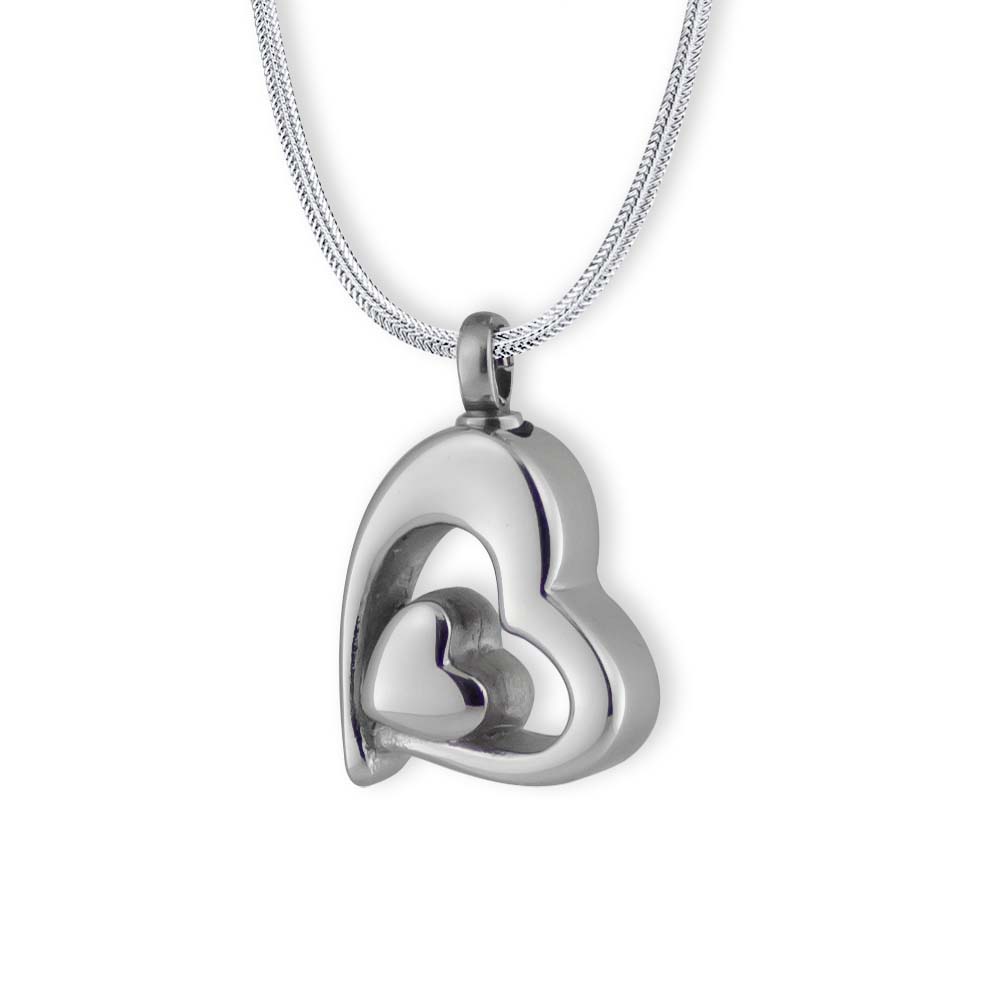 Stainless Steel Cremation Urn Pendant with Chain - Silver Colored Heart