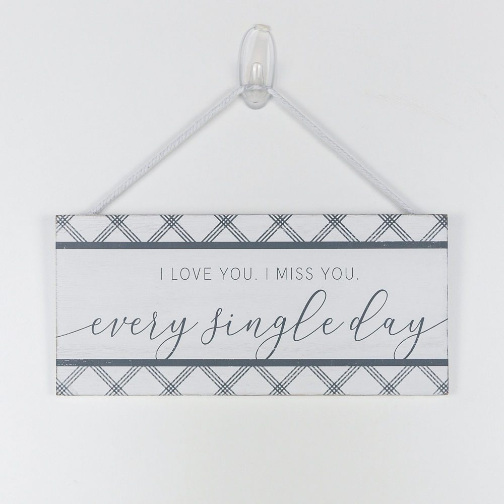 Decorate your home with Adams & Co's creative decors! This wood tile (Product Number 11048) displays a lovely message saying, "I Love You. I Miss You. Every Single Day". It is 11" wide, by 5" high, and .25" thick and it can look great hanging on your room. Using the versatile colors of grey and white, this wood tile compliments well with a wide range of home and office decors. Designing home and holiday decors since 2002, Adams & Co has shown the world its unique style and conventional flair that can bring you any home or office theme that you want to achieve.
