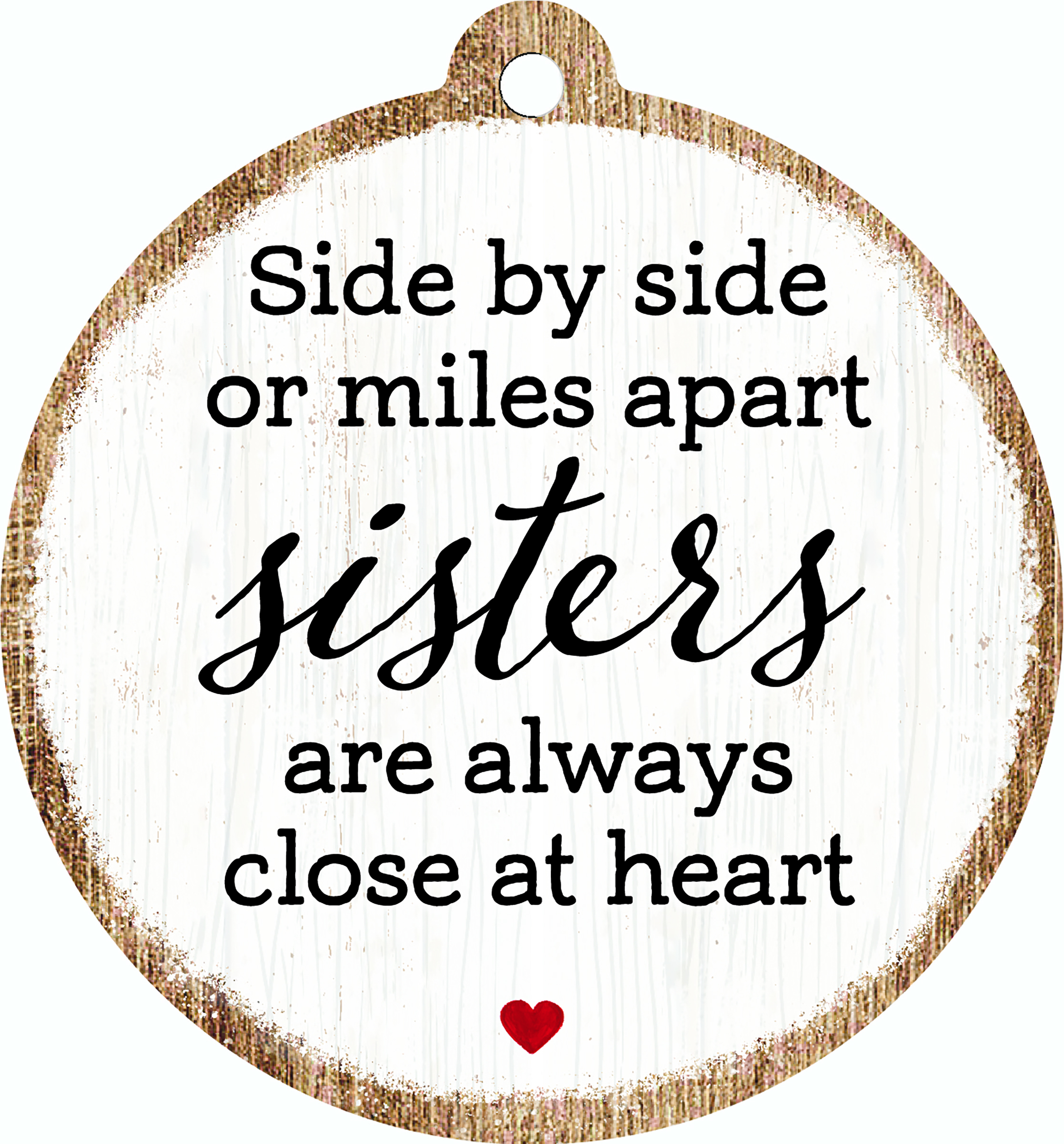 Side By Side or miles apart Sisters are always close at Heart - Ornaments Round 4"