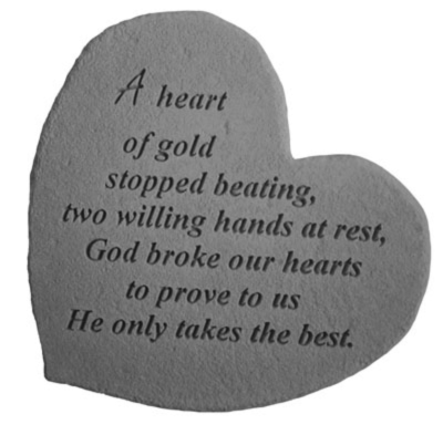 Kay Berry - A heart of gold stopped beating, two willing hands at rest. God broke our hearts to prove to us He only takes the best. Dimensions: 6.75" x 6" Weight: 1.5 lbs