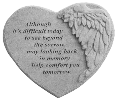 Honor the memory of a loved one with our beautifully crafted memorial stone featuring a delicate angel wing. This heartfelt piece serves as a gentle reminder that although sorrow may cloud today, cherished memories can bring comfort tomorrow. Made from durable stone, this heart-shaped tribute is perfect for gardens, memorial sites, or as a thoughtful gift for someone in need of solace. Let this angel wing stone be a symbol of love and remembrance, helping to keep their spirit alive in your heart.