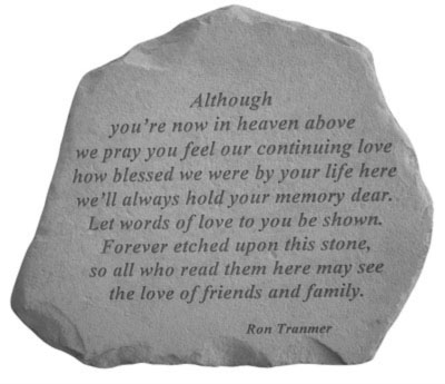 Although you're now in heaven above we pray you feel our continuing love how blessed we were by your life here we'll always hold your memory dear. Let words of love to you be shown. Forever etched upon this stone, so all who read them here may see the love of friends and family. 13.5" x 12" 11 lbs.