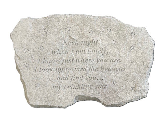 Each night when I am lonely, I know just where you are. I look up toward the heavens and find you... my twinkling star. Dimensions: 18" x 12.25" Weight: 8 lbs.