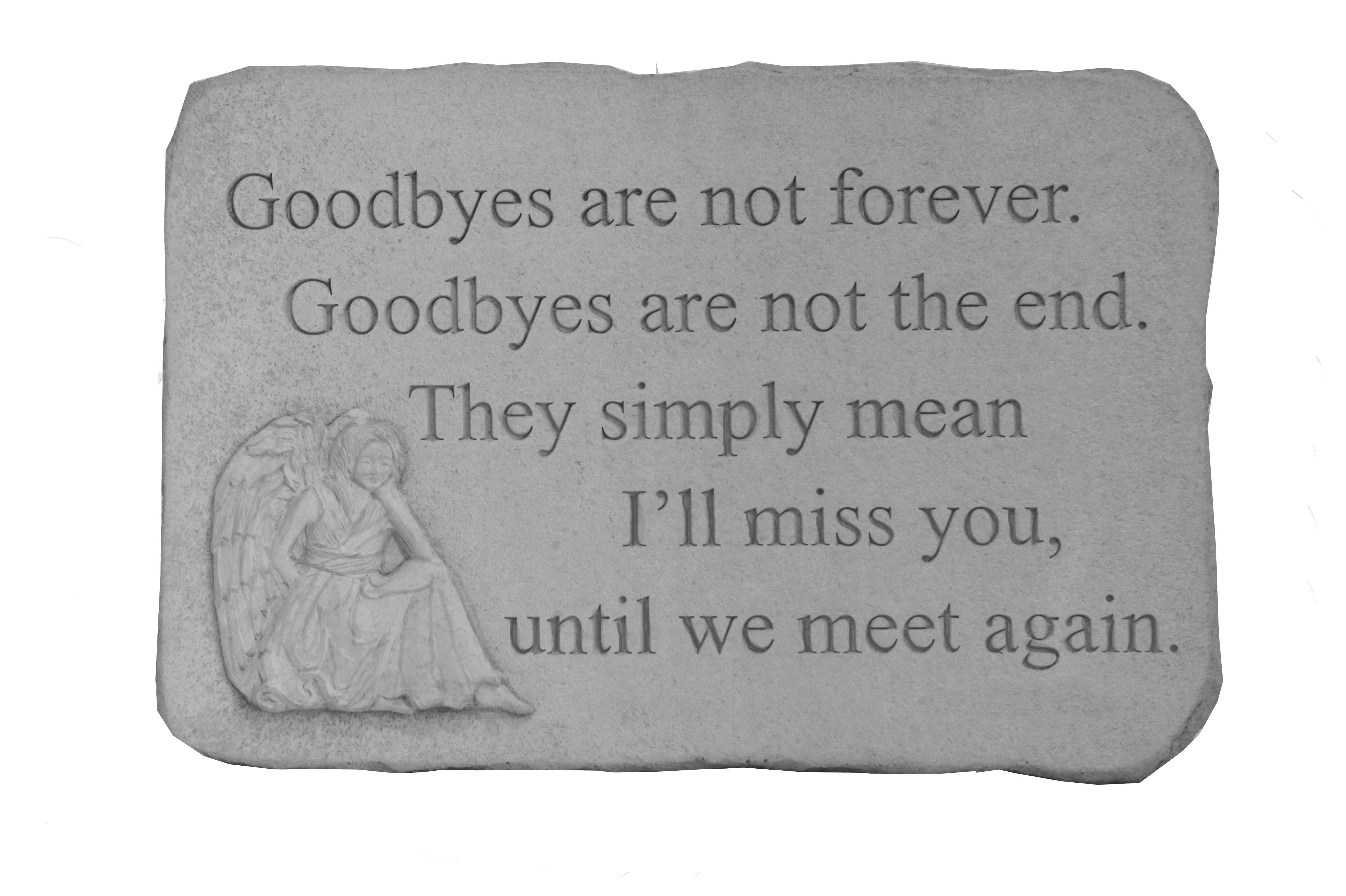 Kay Berry - Goodbyes are not forever, Goodbyes are not the end. They simply mean I'll miss you, until we meet again. 15.25" x 10.5" 8.5lbs.