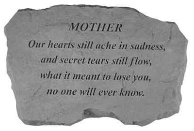 Message: MOTHER Our hearts still ache in sadness, and secret tears still flow, what it meant to lose you, no one will ever know. Dimensions: 16" x 10.5" Weight: 11 lbs.
