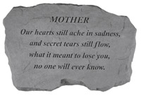 Message: Our hearts still ache in sadness, and secret tears still flow, what it meant to lose you, no one will ever know. Concrete stone. 16" x 10.5". 11 lbs.