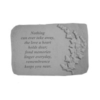 Nothing can ever take away, the love a heart holds dear; fond memories linger everyday, remembrance keeps you near. 15" x 10" weighs 7.5 lbs.