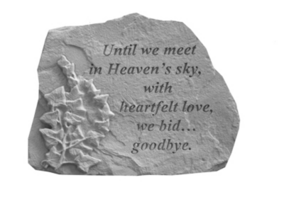 This beautifully crafted stone serves as a heartfelt reminder of love that transcends time and space. Engraved with the touching phrase "Until we meet in Heaven's Sky with heartfelt love, we bid... goodbye," it captures the essence of cherished memories and eternal bonds. Perfect for memorials or as a thoughtful gift, this stone offers comfort and solace, allowing you to keep your loved ones close to your heart. Celebrate the beauty of love that lasts forever with this meaningful keepsake.