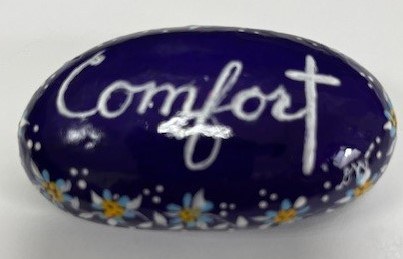 Words on back of stone - Blessed are those who mourn, for they will be comforted. Matt 5:4