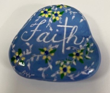 Painted rock 10 Faith - Blue with yellow flowers
