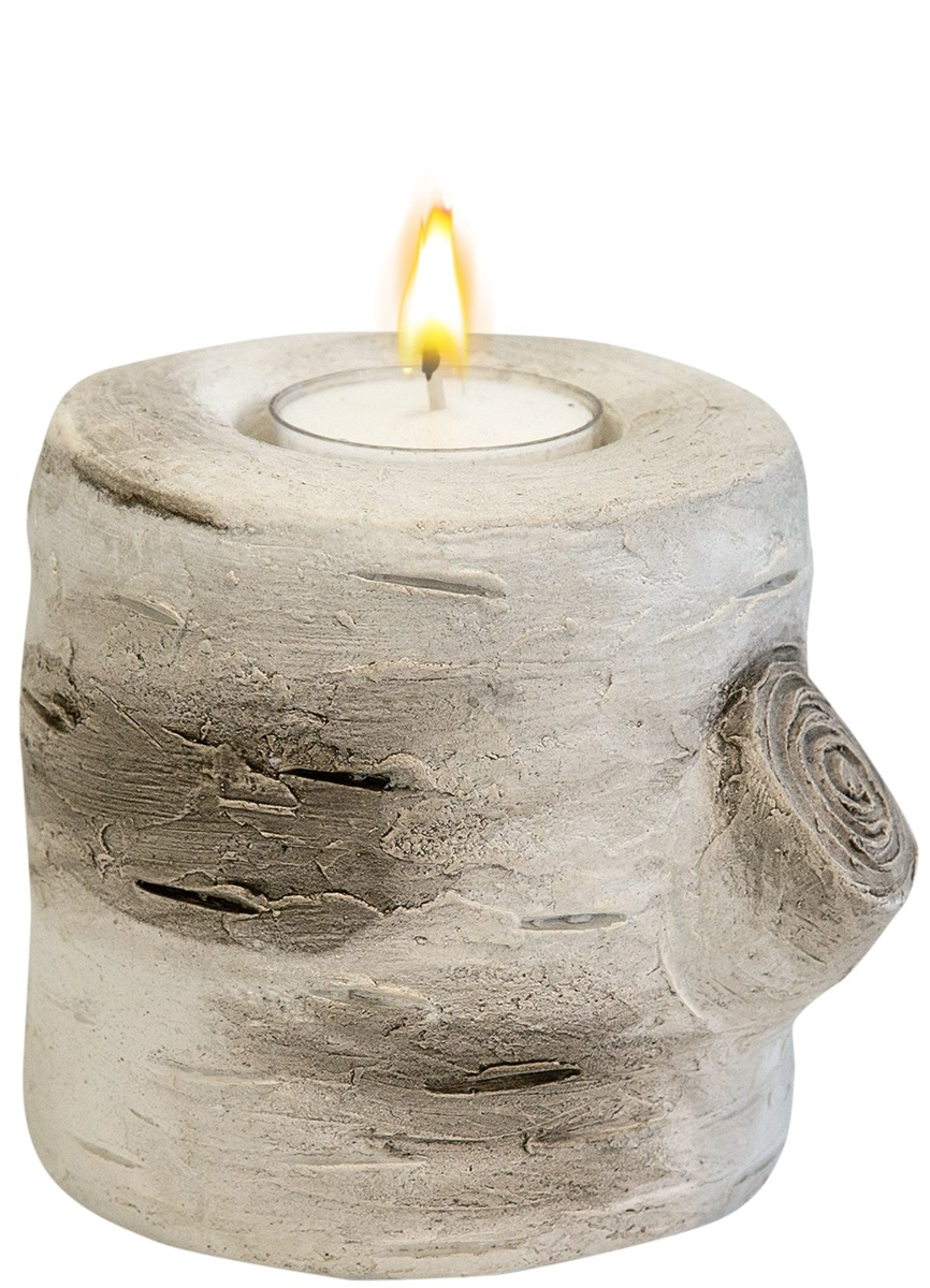Our Birch Pillars come in three sizes, with a tea light included with each, to add to the top for a stunning centerpiece. Surround them with evergreen, pinecones or other greenery for added effect. Large Pillar is 7 1/2 inches tall, medium is 5 1/2 inches, and the small is 3 1/2 inches. They are each 3 inches in diameter.
