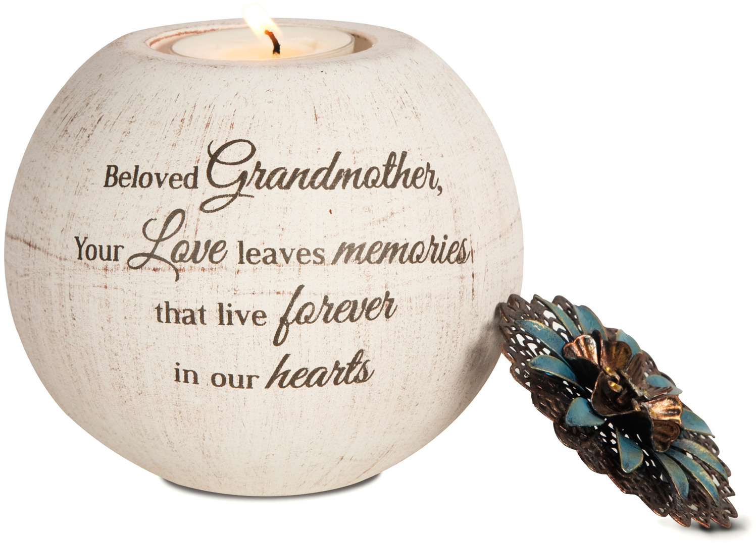 Beloved Grandmother, Your Love leaves memories that live forever in our hearts. 4" round Tea light candle holder.
