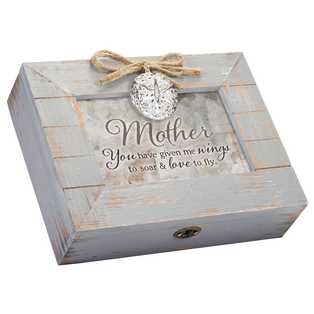 Mother You have given me WINGS to soar &love to fly. With Locket on Front. Song: Wind Beneath My Wings. 8 1/2 L x 6 1/2 D x 2 1/4 H Music Box
