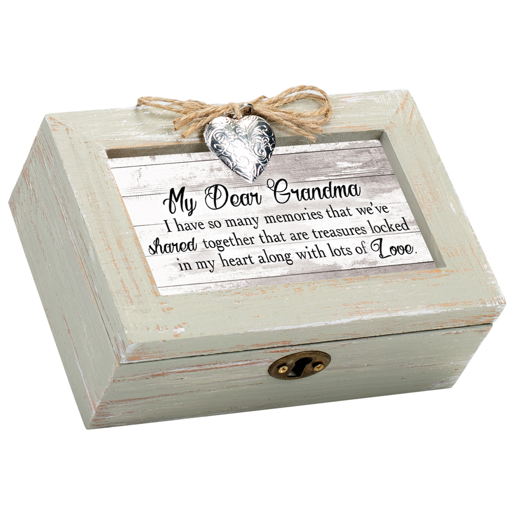 MY DEAR GRANDMA - I have so many memories that we've SHARED together that are treasures locked in my heart along with lots of LOVE. Song: Edelweiss 6" Long x 4" Deep x 2" High. Music Box
