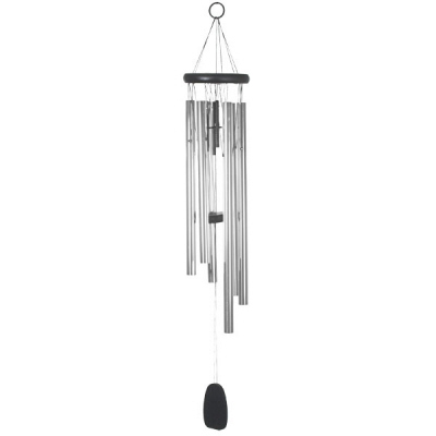 Pachelbel Canon chime. Tuned to the notes of Johann Pachelbel's celebrated Canon, with a small chime within the main chime for fuller sounds. Black finish ash wood, 6 silver tubes, 4 black rods. 32.6" long - 1.9 lbs.