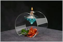 One of the newest products is the Arch Light Lamp. This beautifully arched lamp features a suspended reservoir that is unique in its cone shape. When lit, the flame accentuates the beautiful arc of the lamp and radiates a warm glow throughout the room. Approximate size: 4.5" x 4.5" x4.5" Each lamp comes with a wickholder, two pieces of wick and a fillerspout.