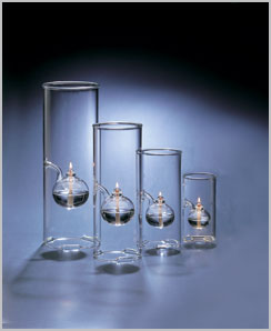 Wolfard oil lamps. Handblown from borosilicate glass, adding durabilty to the classic designs. Skilled glassbowers craft each object using Wolfard's exclusive in-flame technique at highter-than-usual-temperatures. Set includes lamp, solid polished brass base, wickholder, wick, and filler spout. Sizes: 6" $65.00, 9" $75.00, 12" $80.00, 15" $130.00