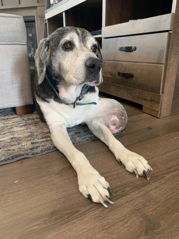 Jax came into this world with big feet, ears that hung to the floor, and a puppy smile that was contagious. He graduated from a puppy, grew into those big feet and floppy ears, and became the most handsome 72 pounds of furry, puppy-kissing, adult dog that thought he was a lap baby.